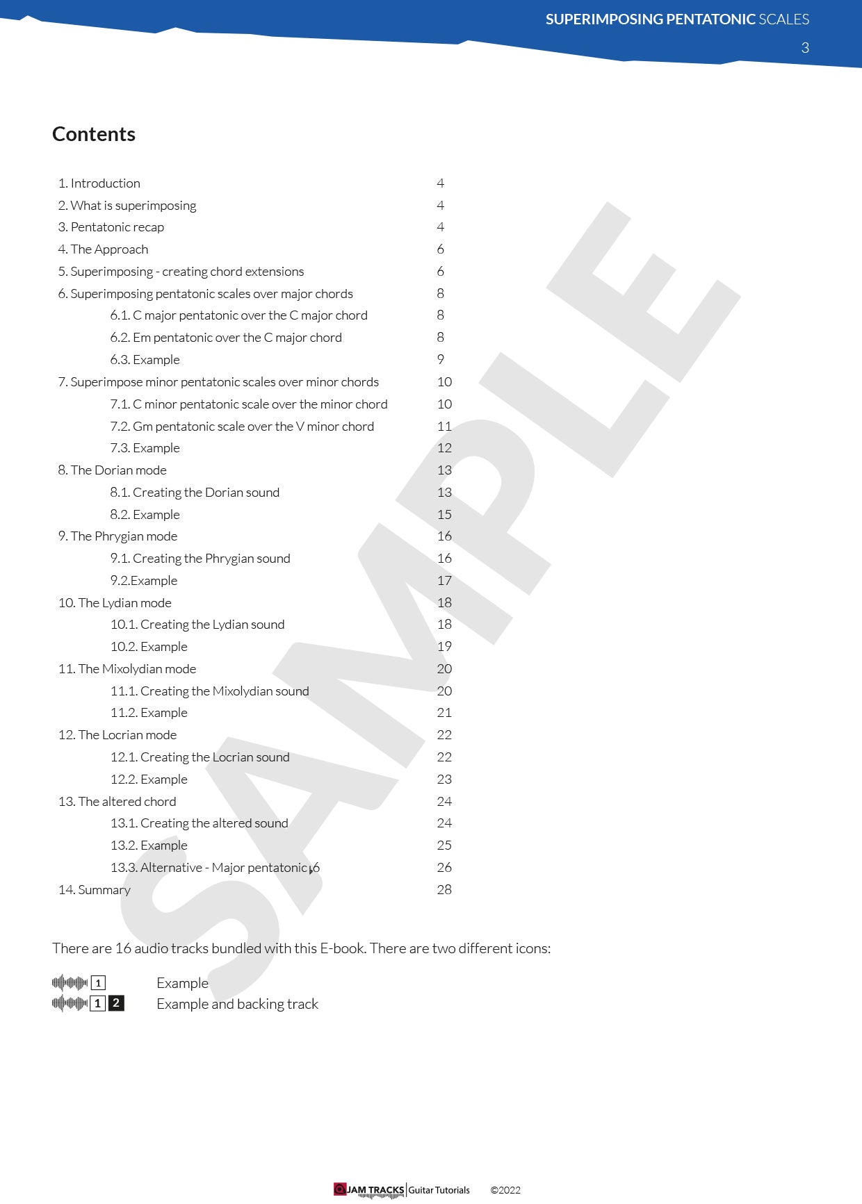In this e-book we are going to explore the possibilities to play the minor Pentatonic scale chords from another key. We will layer the Pentatonic scale over chords in a way that wouldn't be the obvious choice. In this way we can create beautiful chord extensions and modes with a simple Pentatonic scale.